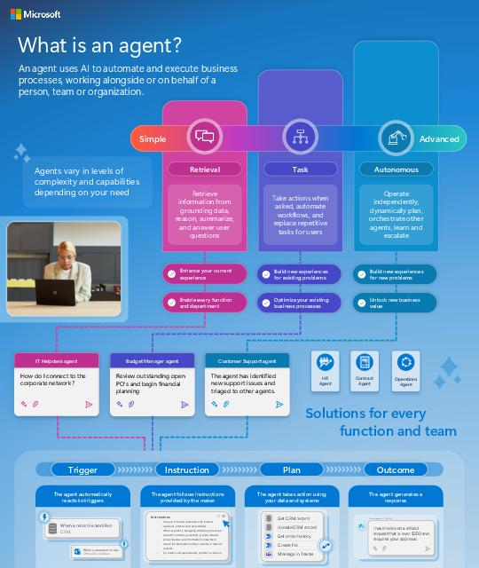 🤖 Ever wondered what an AI agent really is and how it fits into your workday? Microsoft 365 Copilot Agents use AI to automate and execute business processes, working alongside or on behalf of people, teams, and entire organizations. View this infographic to see how agents interact with your data and systems to optimize work, streamline decisions, and enhance productivity. @Microsoft 365 @Microsoft Copilot